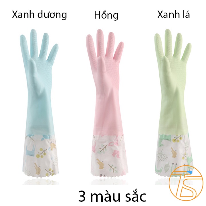 TECHSSHOP giới thiệu mẫu găng tay vệ sinh mới bền đẹp cho các chị em đó là Găng tay rửa bát chén nhà bếp 2 lớp có họa tiết dài 48 cmGăng tay rửa chén bát, giặt quần áo bảo vệ tay, siêu dày dòng loại dài 48.5cm rất tiện lợi với chất liệu nhựa PVC dẻo và cao su dai phù hợp với các chị em thường xuyên tiếp xúc nước, các chất tẩy giúp làn da tay không bị khô, lão hóa da