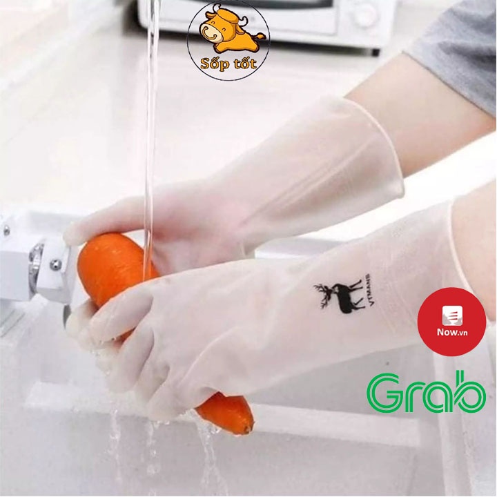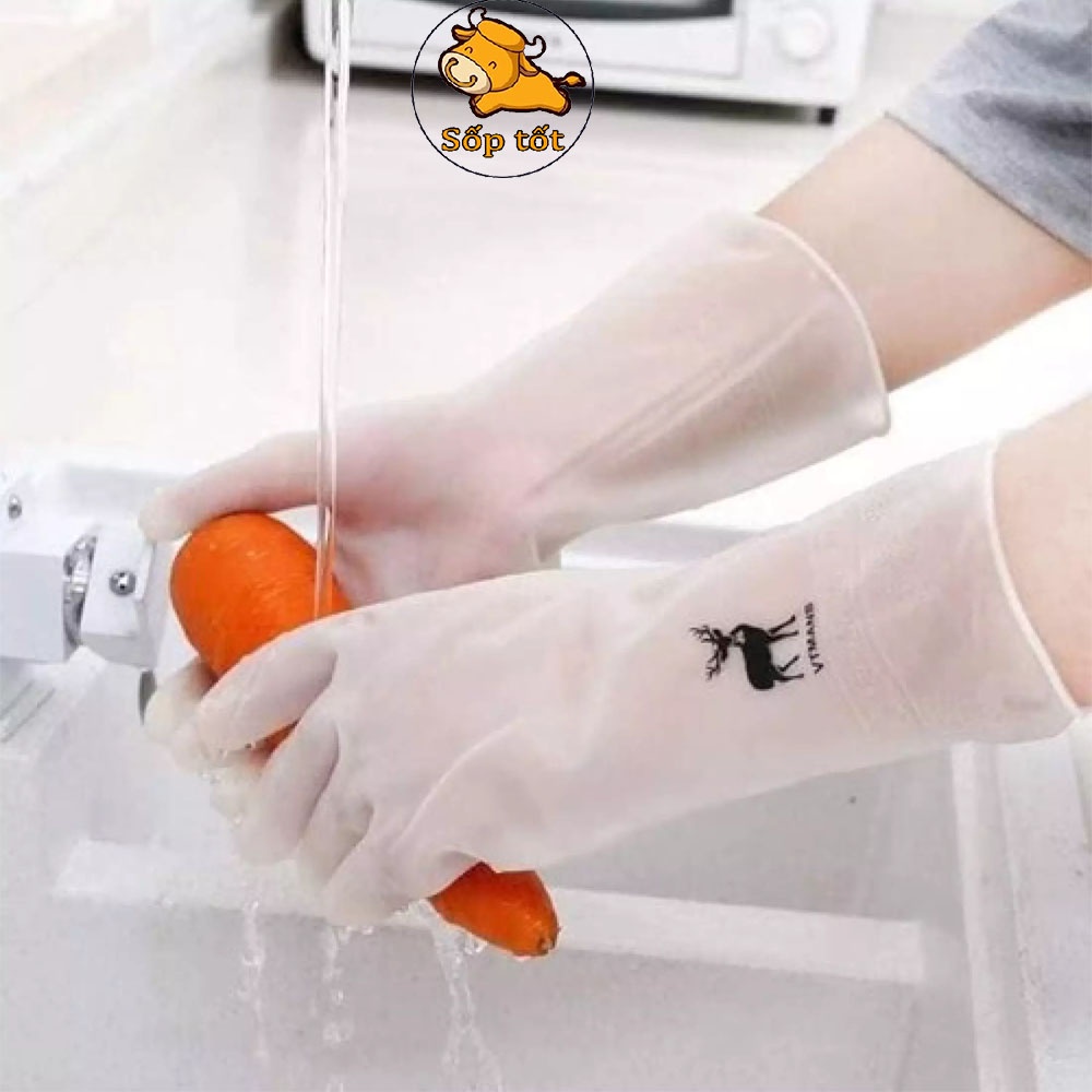 Bao tay rửa chén bát hình hươu găng latex siêu dai mềm đẹp GD60