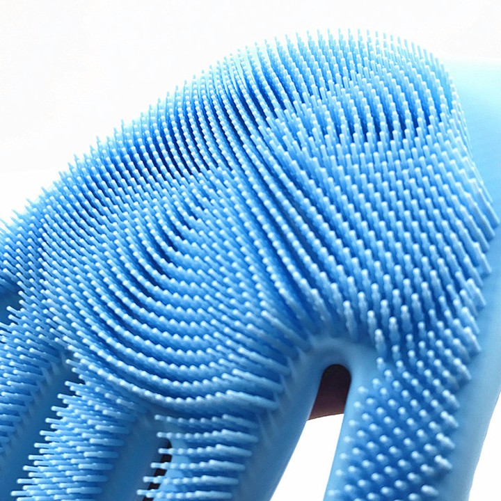 - Găng tay rửa bát không cần dùng đến giẻ, lớp gai silicon sẽ vừa làm sạch lại tạo bọt cực nhiều.