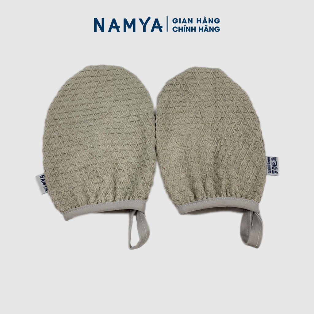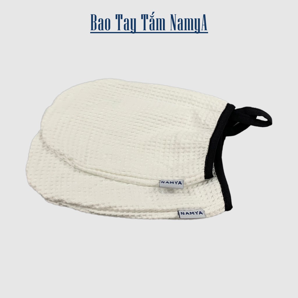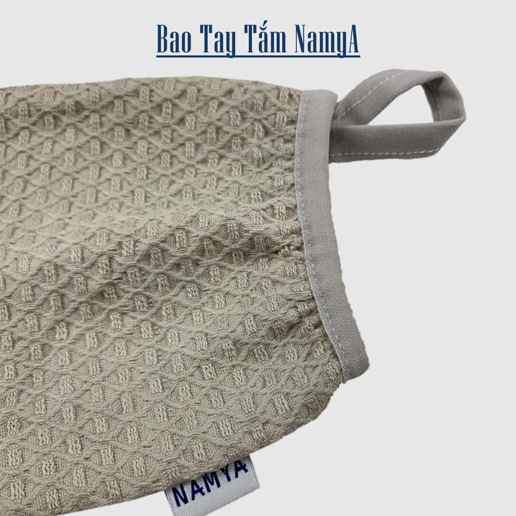 Bao tay tắm NAMYA vải cotton, vân tổ ong, làm sạch da chết, mát xa toàn thân - BTTC