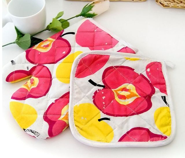 🌸Đồng thời găng còn được trang trí bằng loại vải họa tiết dễ thương, bền màu, tạo niềm vui nấu ăn cho bạn.