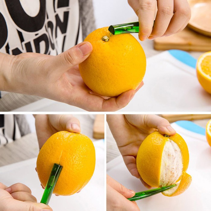 Những cái lá phía trên mà bạn thấy thực ra là những chiếc ghim hoa quả. Ngoài ra bên trong gồm có các dụng cụ như vắt nước cam, nghiền hoa quả, miếng xúc bơ, lột vỏ cam hoặc chanh, miếng lược, dụng cụ cắt trái cây,v.v...