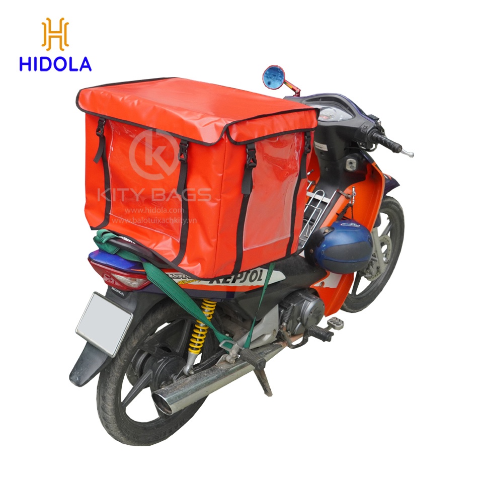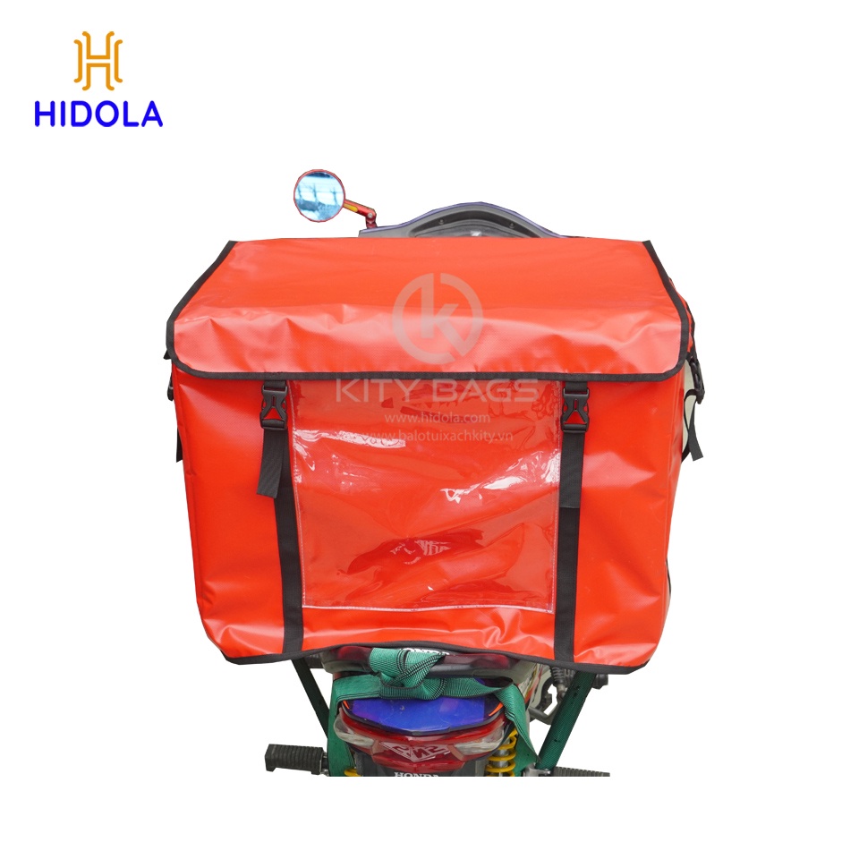 Ở mặt trước và 2 hông còn thiết kế thêm ngăn túi màn pvc kính trong giúp các shop, cửa hàng có thể in tờ rơi hay logo nhét bỏ vào trong nhằm quảng cáo cho shop cửa hàng mình trong quá trình vận chuyển.