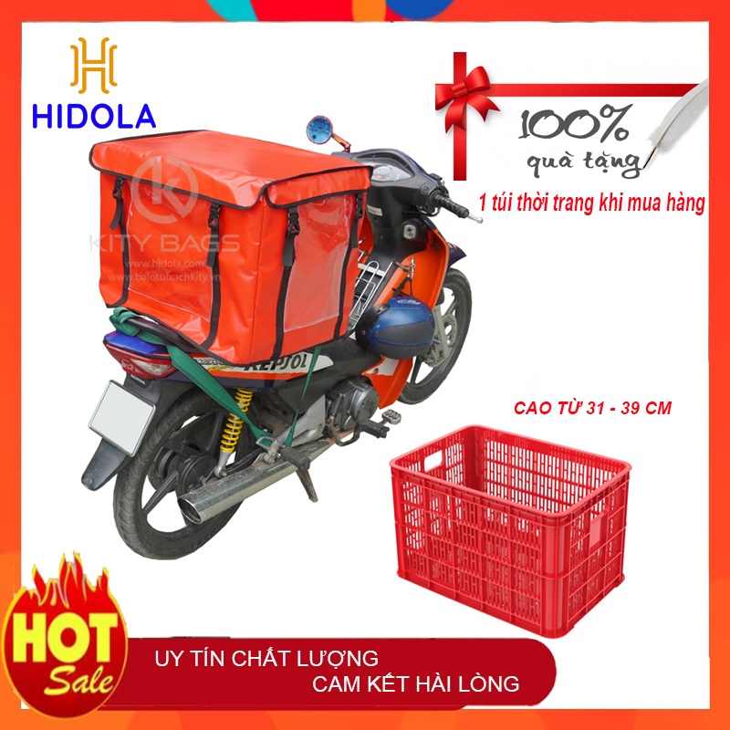 Áo trùm che mưa cho rổ nhựa ngoài việc che mưa chống ướt còn mang tính thẩm mỹ cao cho các shipper giao hàng.