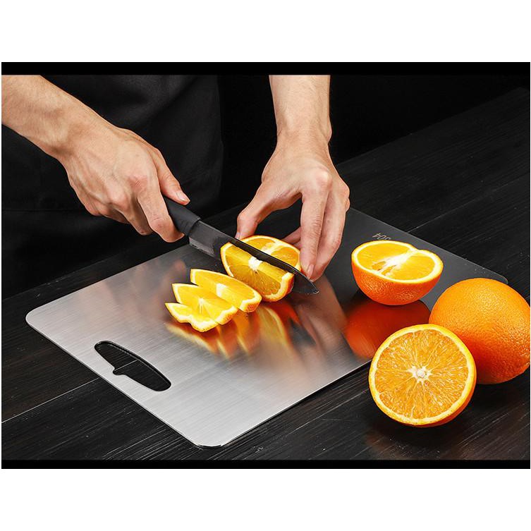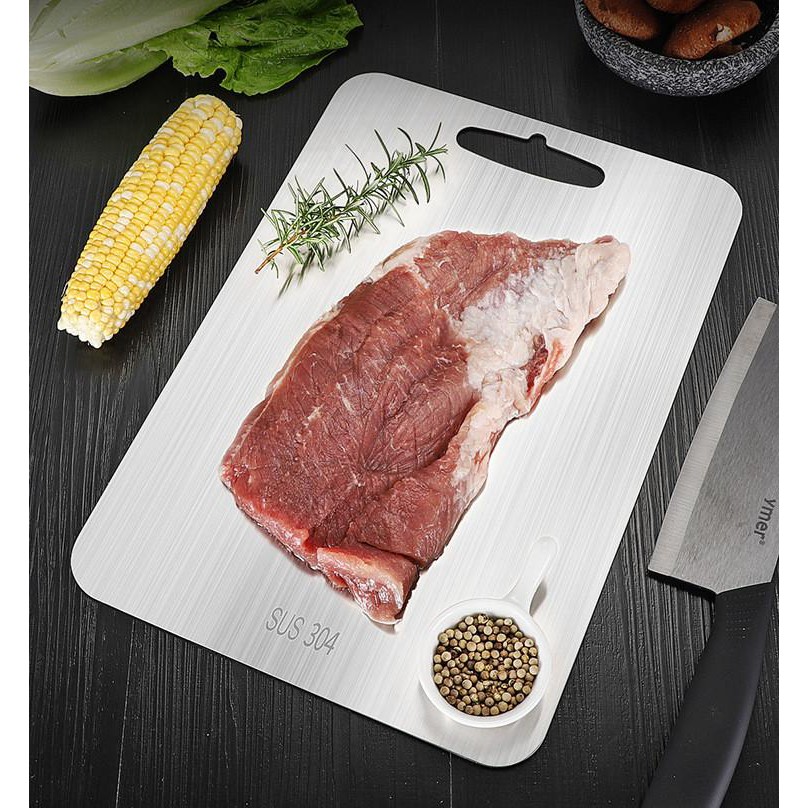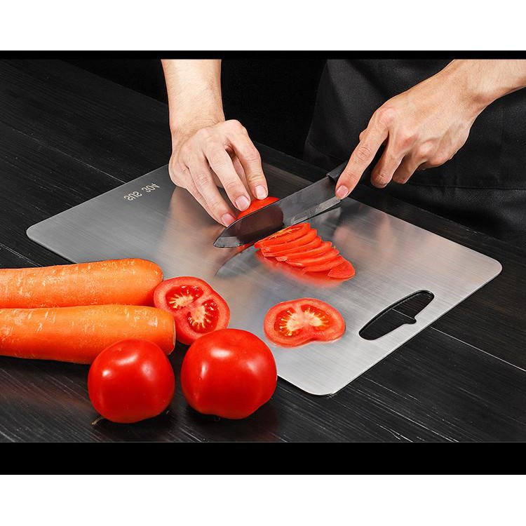 Ưu điểm nổi bật của Abi Board chính là chất liệu thép SUS 304 siêu bền, siêu sạch, đa năng và có thể sử dụng trọn đời. Nhờ vào chất liệu đặc biệt này, bề mặt thớt không để lưu lại các thực phẩm thừa, tránh sự xuất hiện của vi khuẩn, đồng thời lại giữ được hương vị tươi ngon có trong thức ăn.Khác với những chiếc thớt thông thường, Abi Board sử dụng được cho cả thực phẩm sống - chín, hoa quả hay rau củ bởi chiếc thớt độc đáo này rất dễ làm sạch và diệt vi khuẩn. Sau khi cắt - thái thực phẩm sống, bạn chỉ cần tráng qua bằng nước nóng là có thể sử dụng chúng để cắt thái hoa quả hay thức ăn chín. Rất tiện, tiết kiệm và sạch sẽ đúng không nào?