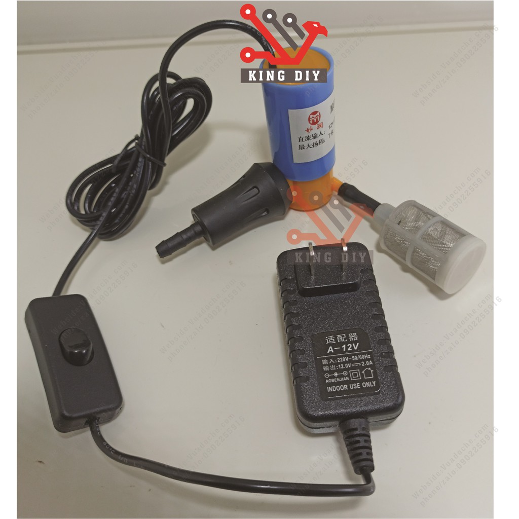 * 01 máy bơm chìm mini 12v gắm liên adapter cắm trực tiếp điện 220v ( để chìm trực tiếp vào xô ,chậu hoạc thùng nước)