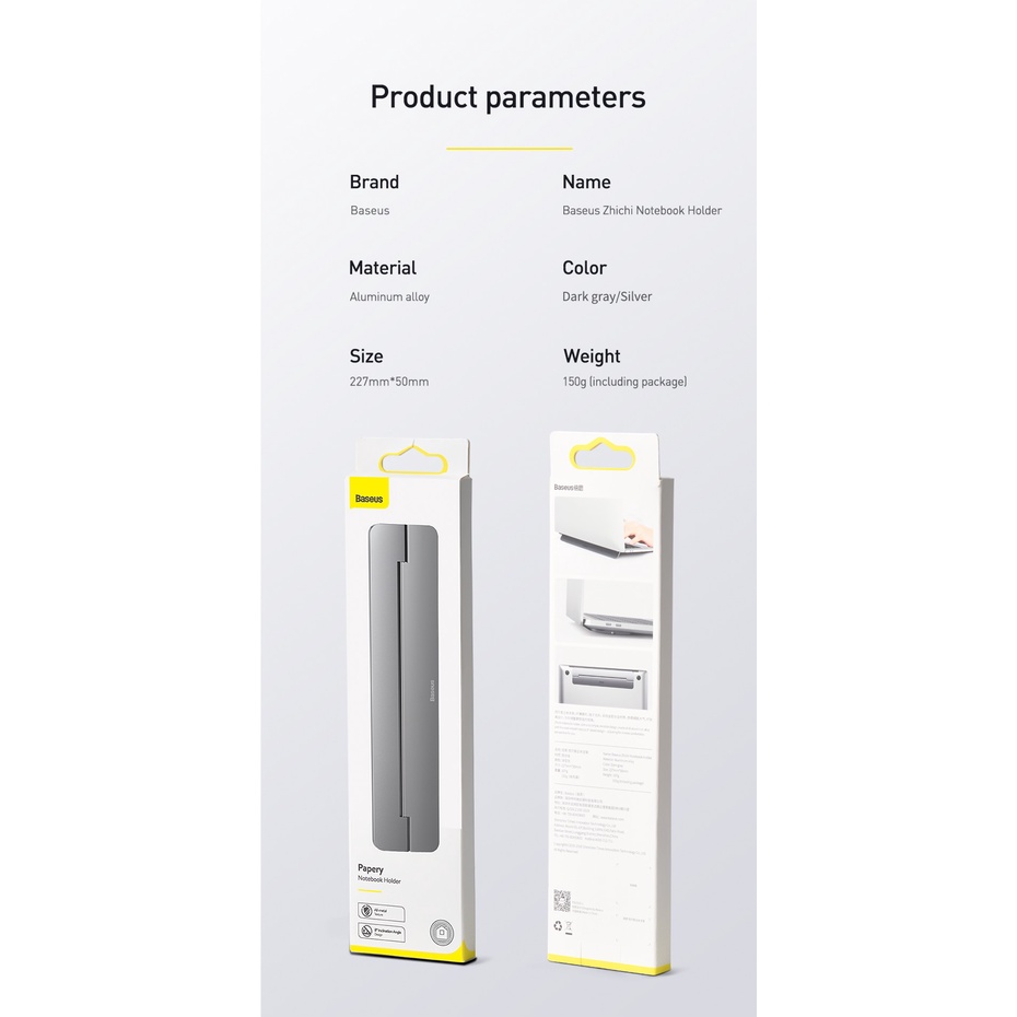 Giới thiệu 【BASEUS 】Đế nâng/ Tản nhiệt bằng nhôm Baseus Papery Notebook Holder cho Macbook/ Laptop siêu mỏng, nhẹ, dễ xếp gọn