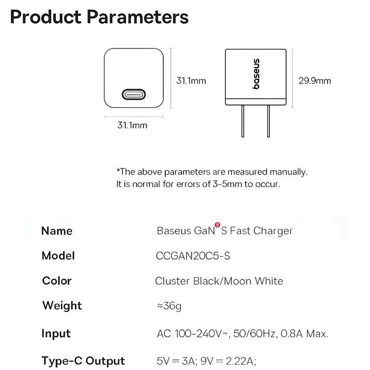 - Bộ Sạc Nhanh 20W Baseus GaN5S 1C (Kèm Cáp C to C 100W Dynamic 3 Series) với công nghệ sạc nhanh 20W, bạn sẽ tiết kiệm thời gian đáng kể khi nạp pin cho thiết bị. Chỉ cần một vài phút sạc, bạn đã có thể sử dụng thiết bị trong nhiều giờ.