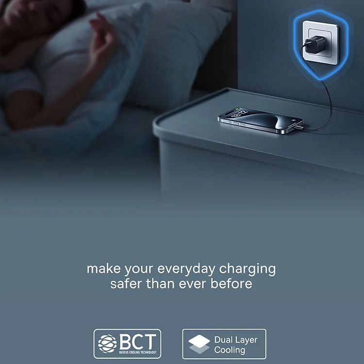 - Công nghệ GaN5S tiên tiến: Công nghệ bán dẫn GaN (Gallium Nitride) giúp thiết kế bộ sạc trở nên nhỏ gọn hơn, nhưng vẫn đảm bảo khả năng sạc nhanh và hiệu quả cao. Không chỉ giúp tiết kiệm không gian, sản phẩm còn có khả năng tản nhiệt tốt hơn, giúp thiết bị của bạn luôn trong trạng thái an toàn khi sạc.