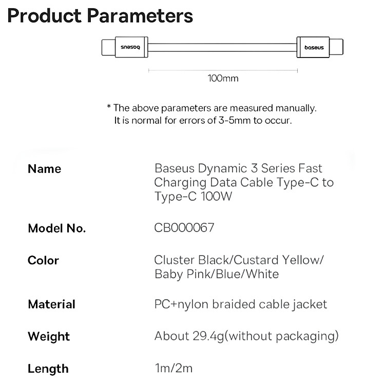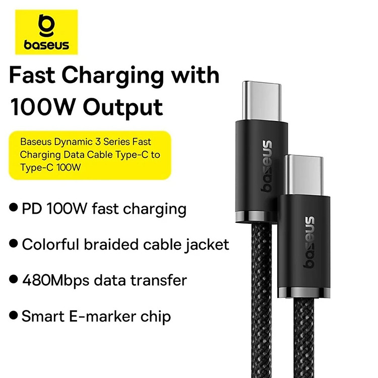 - Cáp Type-C to Type-C 100W Dynamic 3 Series Fast Charging Data Cable: