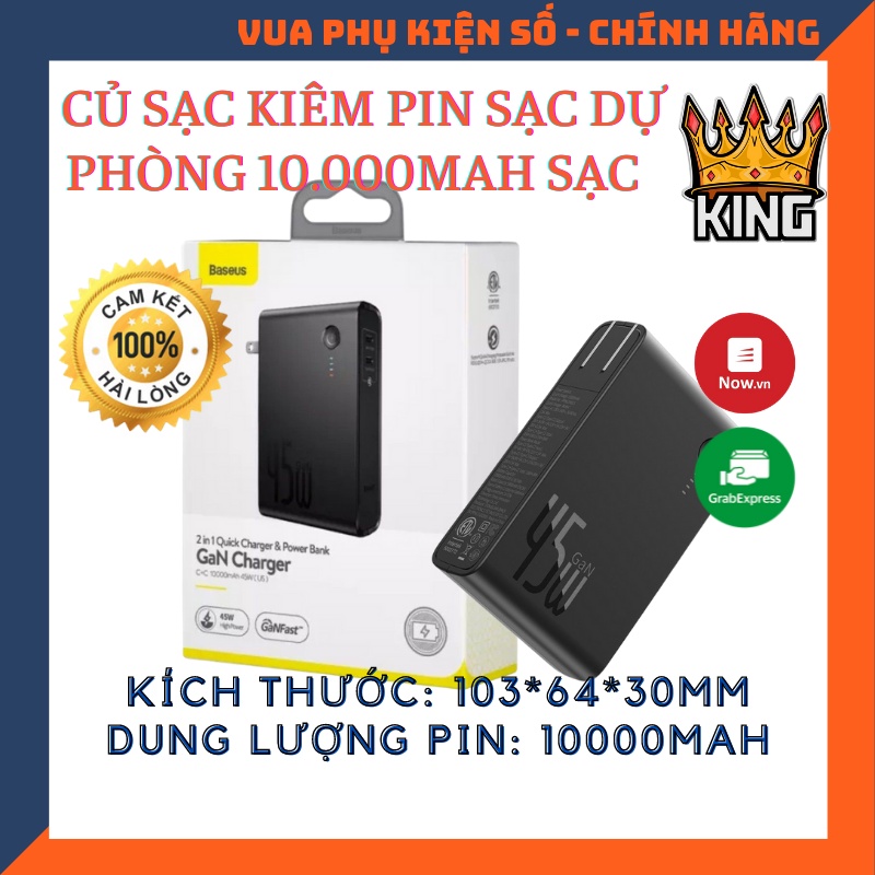 Baseus PPNLD-B Củ sạc kiêm Pin sạc dự phòng 10.000mAh sạc nhanh 45W PPNLD-B TypeC USB