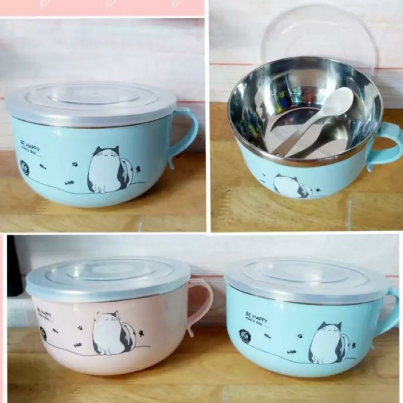 Nhà cửa & Đời sống > Bộ đồ bàn ăn > Tô || Tô ăn mì inox kèm muỗng có nắp đậy Bát ăn mì inox Tô ăn cơm văn phòng Bộ tô muỗngCòn hàng