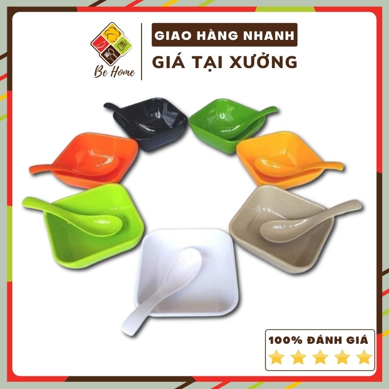 Bát ăn chè hình vuông Fataco nhựa phíp - [Mua 1 tặng 1] [Mua 1 tô tặng 1 thìa ăn chè] - 6 màu BEHOME