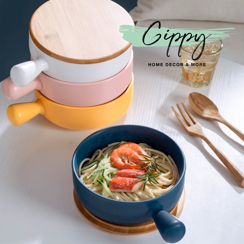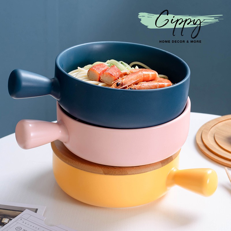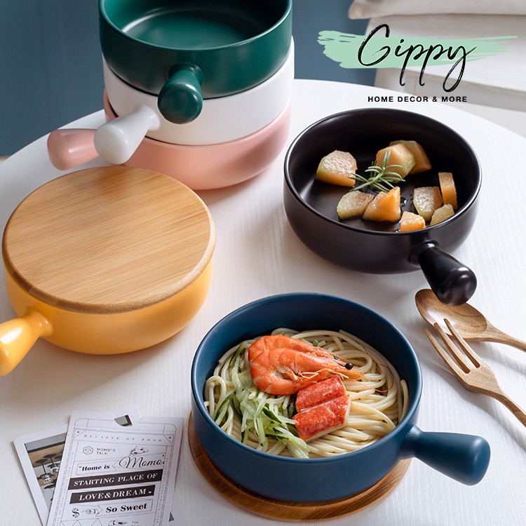 Giới thiệu Bát ăn có tay cầm bằng sứ màu trơn - Gippy Decor
