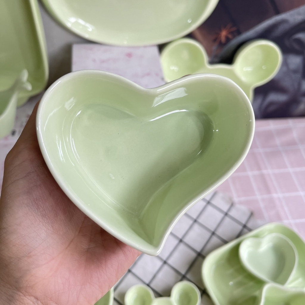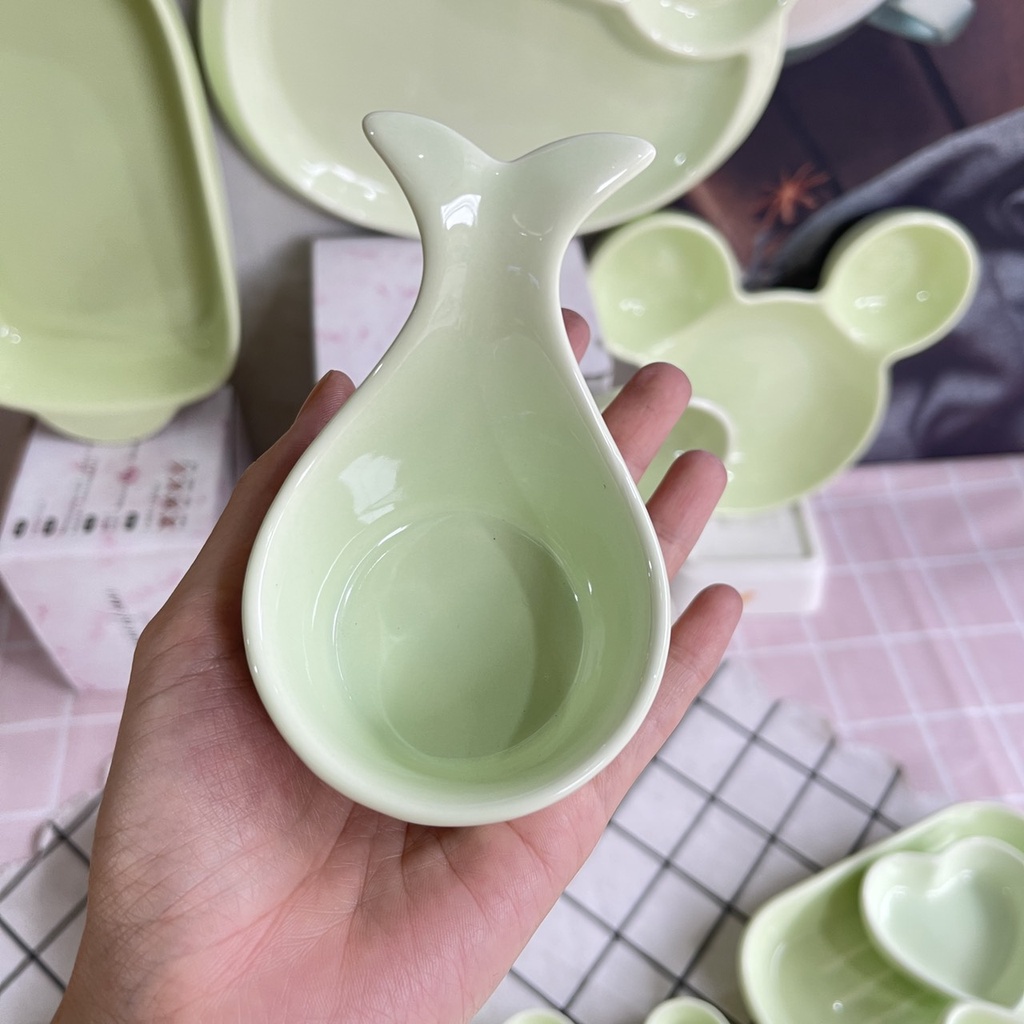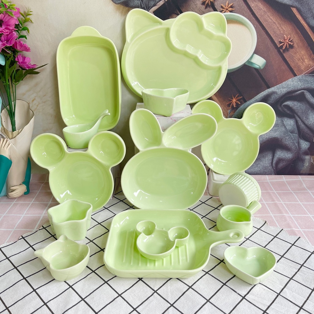 Bát Ăn Cơm Bát Chè Đĩa Sứ Chén Dĩa Sứ Dễ Thương Cute Decor Cao Cấp sét 14 món màu xanh.