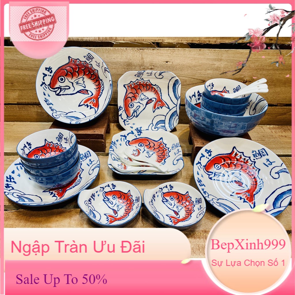Nhà cửa & Đời sống > Bộ đồ bàn ăn > Dĩa || Bát Ăn Cơm Bộ Bát Đĩa Sứ Cá Chép Nhật Bản Decor Chén Dĩa Dễ Thương Cute Cao Cấp B105Còn hàng
