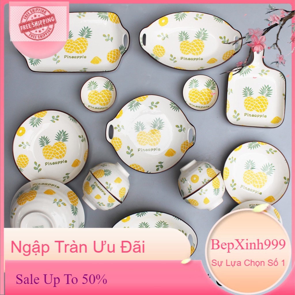 Nhà cửa & Đời sống > Bộ đồ bàn ăn > Dĩa || Bát Ăn Cơm Bộ Bát Đĩa Sứ Decor Chén Dĩa Trái Dứa Dễ Thương Cute Cao Cấp B68Còn hàng