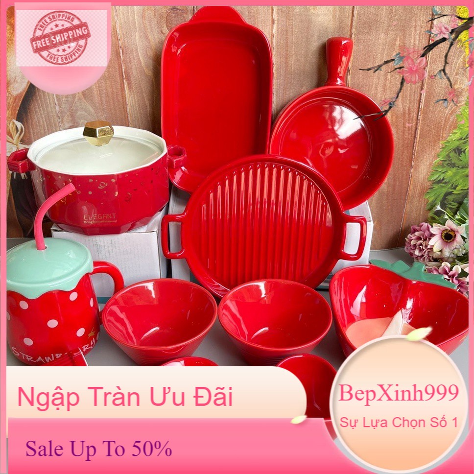 Nhà cửa & Đời sống > Bộ đồ bàn ăn > Tô || Bát Ăn Cơm🥣 Bộ Bát Đĩa Sứ Màu Đỏ Cao Cấp 🥣 Decor - BepXinh999 Chén Dĩa Dễ Thương Mầu Hồng B90Còn hàng