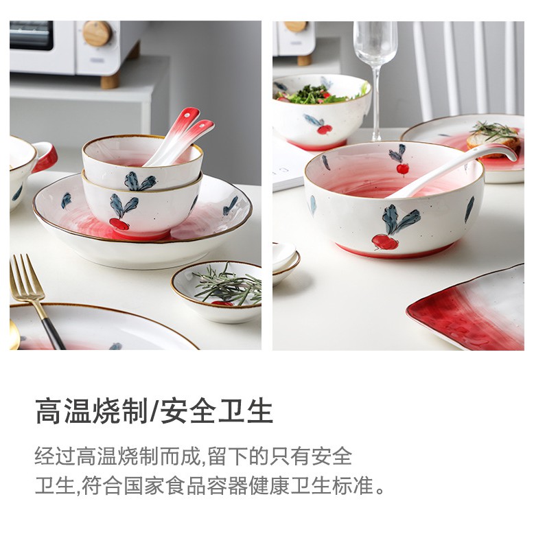 Giới thiệu Bát ăn cơm, chén ăn cơm, bát gia vị - thìa họa tiết củ cải đỏ vẽ tay [ HÀNG SẴN ]