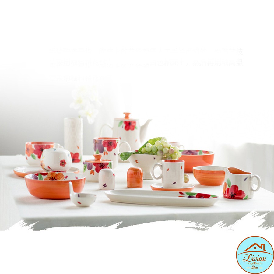 Nhà cửa & Đời sống > Bộ đồ bàn ăn > Tô || Bát ăn cơm � chén ăn cơm, bát gia vị bằng sứ có tay cầm họa tiết hoa lá cam nổi bậtCòn hàng