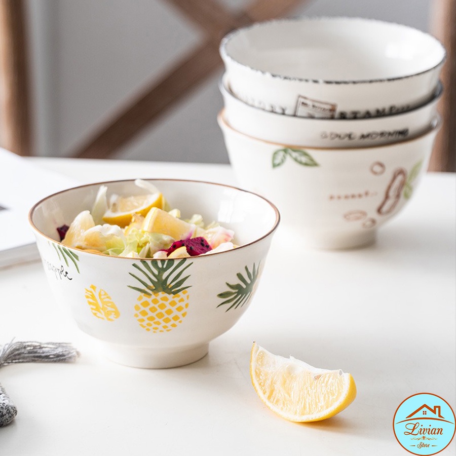 Bát ăn cơm, chén ăn cơm họa tiết dứa viền nâu cực xinh – phụ kiện bàn ăn