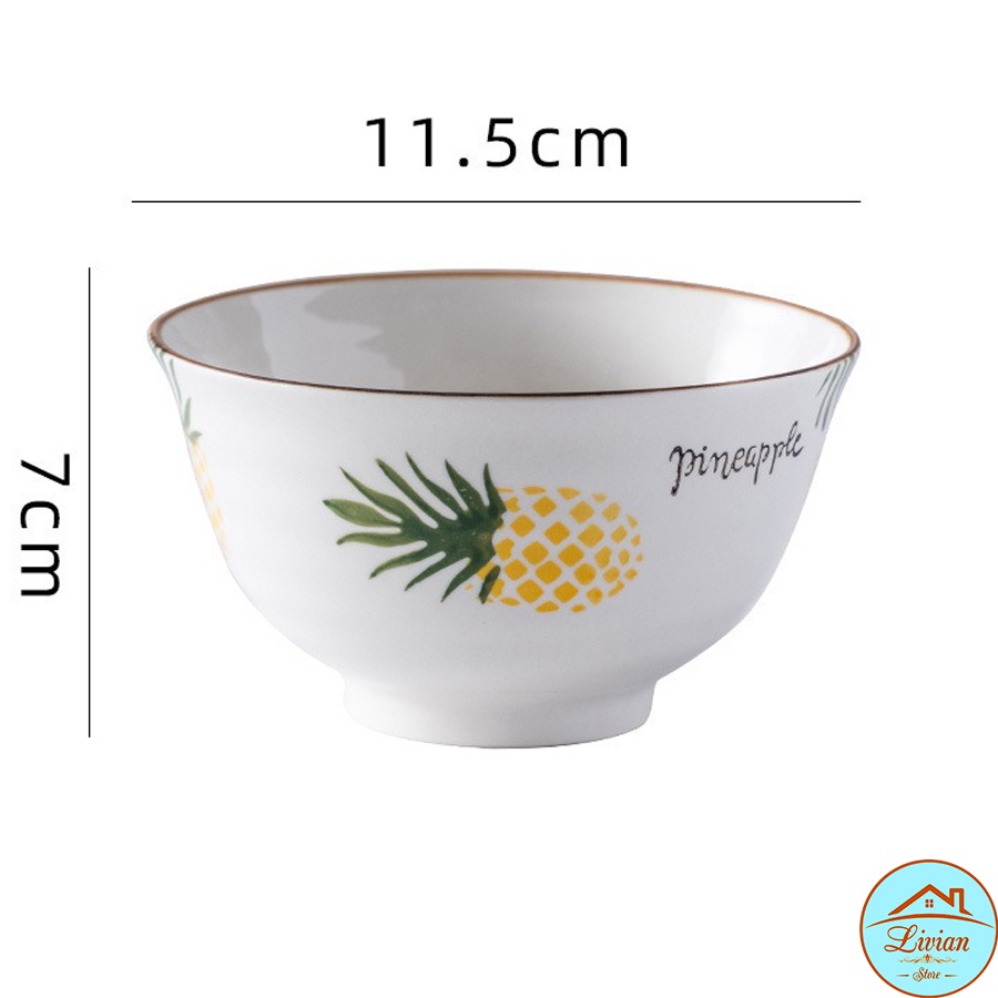 Giới thiệu Bát ăn cơm, chén ăn cơm họa tiết dứa viền nâu cực xinh – phụ kiện bàn ăn