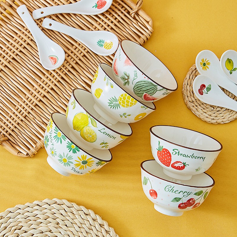 Nhà cửa & Đời sống > Bộ đồ bàn ăn > Tô || Bát ăn cơm, chén sứ Hoa Quả Bát dĩa Decor bàn ăn dễ thươngCòn hàng
