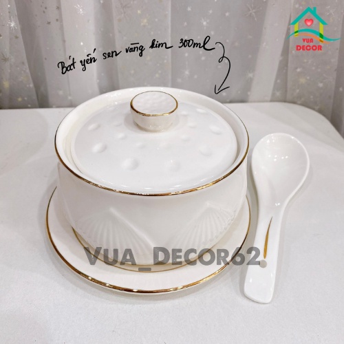 Nhà cửa & Đời sống > Bộ đồ bàn ăn > Tô || Bát Ăn Cơm, Chén Yến Sen Vàng Kim 300ml kèm Nắp - đĩa lót - thìa Tô Dĩa Sứ Đẹp Sang TrọngCòn hàng