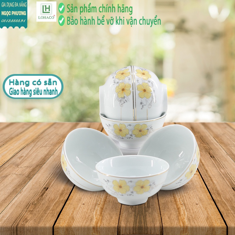 Bộ Bát Ăn Cơm Có Hoa Viền Vàng Kim - Sứ Long Hầu - Set 6 và Set 10 Có Hộp Đẹp