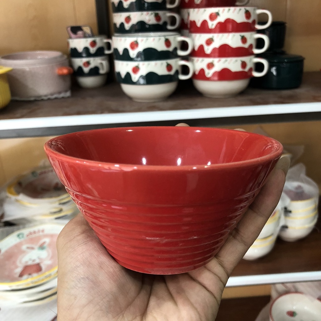 Bát Ăn Cơm Đĩa Sứ Bộ Chén Dĩa Sứ Dễ Thương Cute Bát Đĩa Mầu Đỏ Decor Cao Cấp S36