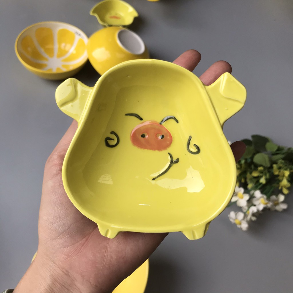 Bát Ăn Cơm Đĩa Sứ Bộ Chén Dĩa Sứ Dễ Thương Cute Bát Đĩa Mầu Vàng Decor Cao Cấp S02