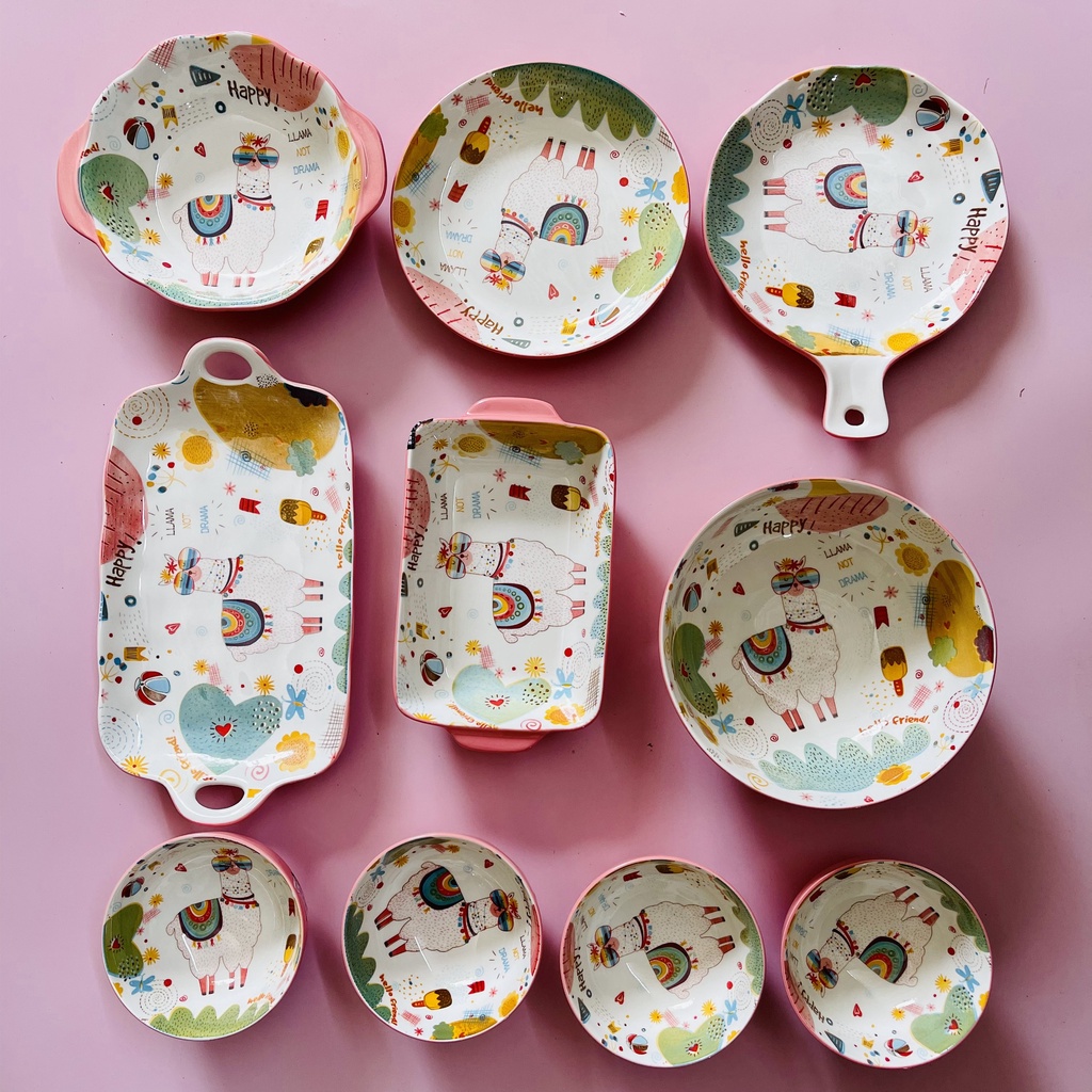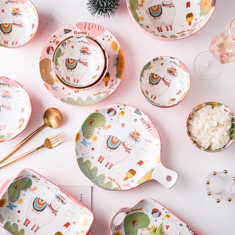 Nhà cửa & Đời sống > Bộ đồ bàn ăn > Tô || Bát Ăn Cơm Đĩa SứTẶNG GÁC ĐŨA Bộ Chén Dĩa Sứ Dễ Thương Cute Bát Đĩa Lạc Đà hồng Decor Cao Cấp (set 10 sản phẩm)Còn hàng