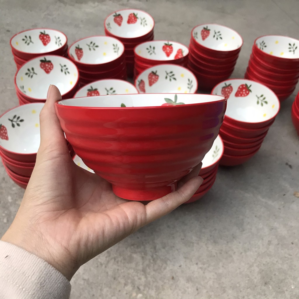 Bát ăn cơm họa tiết dâu tây cực sang chảnh