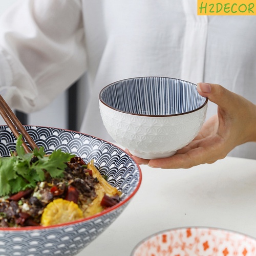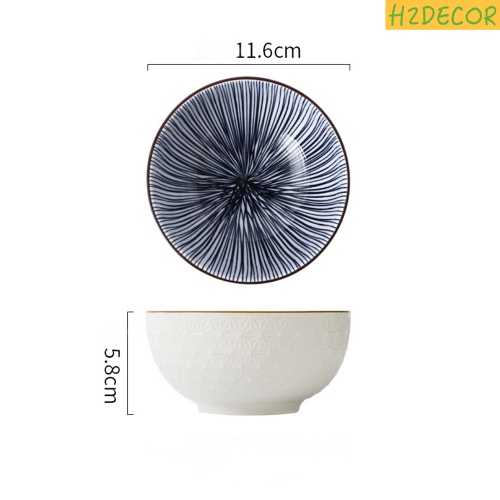 ** Bát ăn cơm hoạ tiết sọc xanh tráng men hoa vân trắng cao cấp phong cách Nhật Bản - H2DECORĐồ gốm sứ phong cách Nhật Bản đặt yếu tố tinh tế và đơn giản lên hàng đầu dùng tối đa 2 đến 3 màu trên mỗi sản phẩm; các hoa văn vẽ tay không quá cầu kỳ tuy nhiên lại được trau truốt cẩn thận, các chi tiết có thể không đồng đều nhưng chính điều đó đem đến vẻ tự nhiên, mộc mạc mà các sản phẩm khác không có được.️