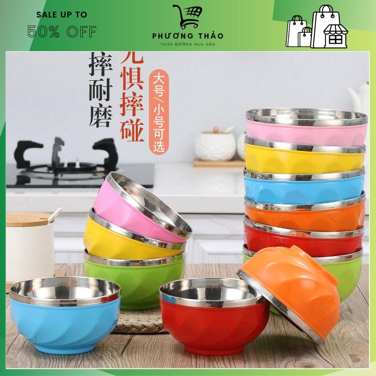 Bát ăn cơm inox, hai lớp chống đóng cặn, chống rơi rớt, cách nhiệt 13 / 15cm siêu rẻ giá tốt (giao màu ngẫu nhiên)- Bát hai lớp inox nhiều màu sắc cao cấp Loại vật liệu: thép không gỉ 201