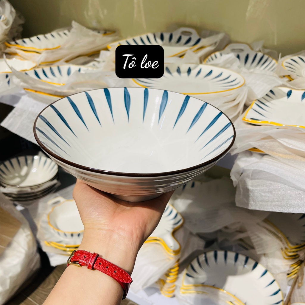 Nhà cửa & Đời sống > Bộ đồ bàn ăn > Tô || Bát Ăn Cơm Phong Cách Nhật Bộ Bát Đĩa Sứ Kẻ Vằn Decor Chén Dĩa Dễ Thương Cute Cao Cấp B139Còn hàng