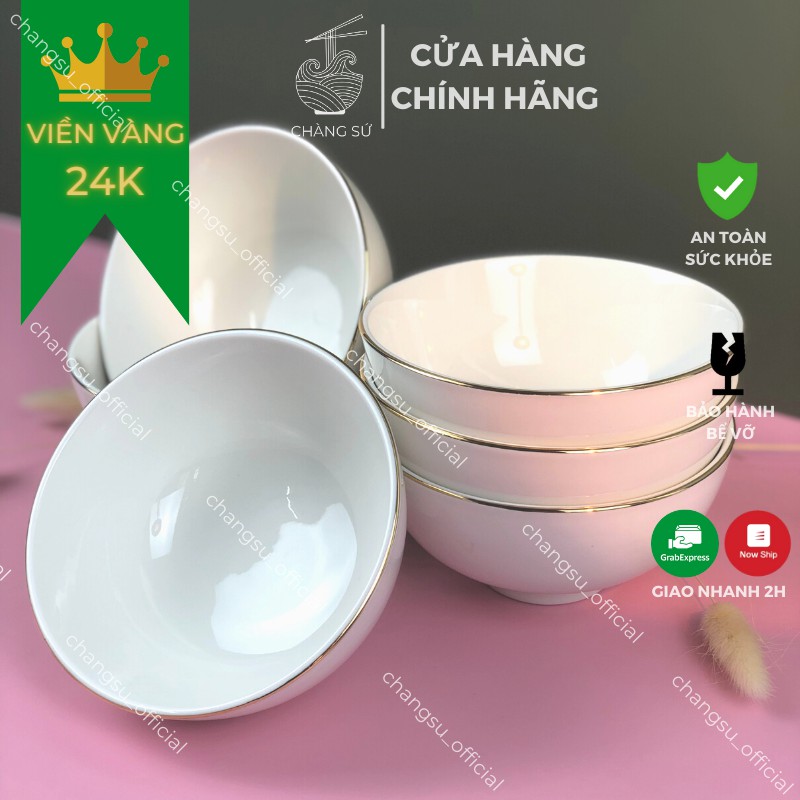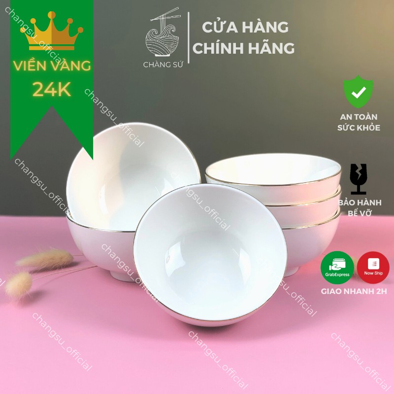 Bộ bát ăn cơm viền vàng 12k đẳng cấp - Chén cơm viền vàng sứ Minh Châu set 6 và set 10 bát ăn