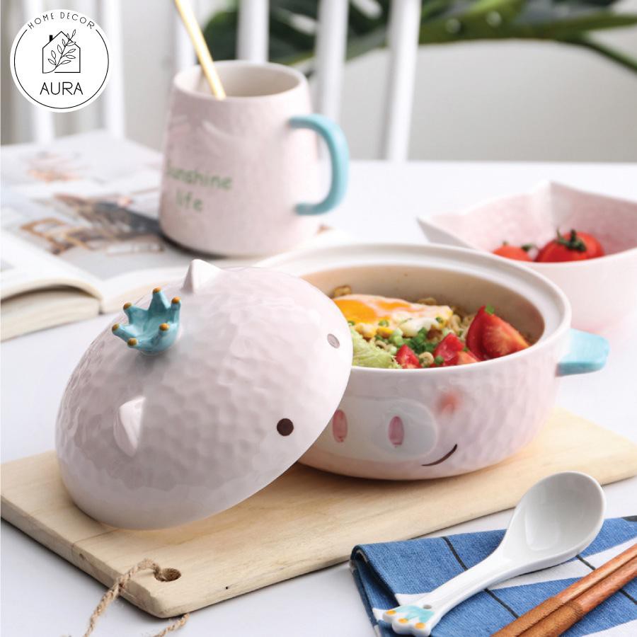 Nhà cửa & Đời sống > Dụng cụ nhà bếp > Nồi || Bát Ăn Dặm, Bát Nồi Gốm Sứ Có Nắp Hình Heo Vua Đáng Yêu Và Tiện Dụng - Hàng Sẵn Kho- Giao LuônCòn hàng