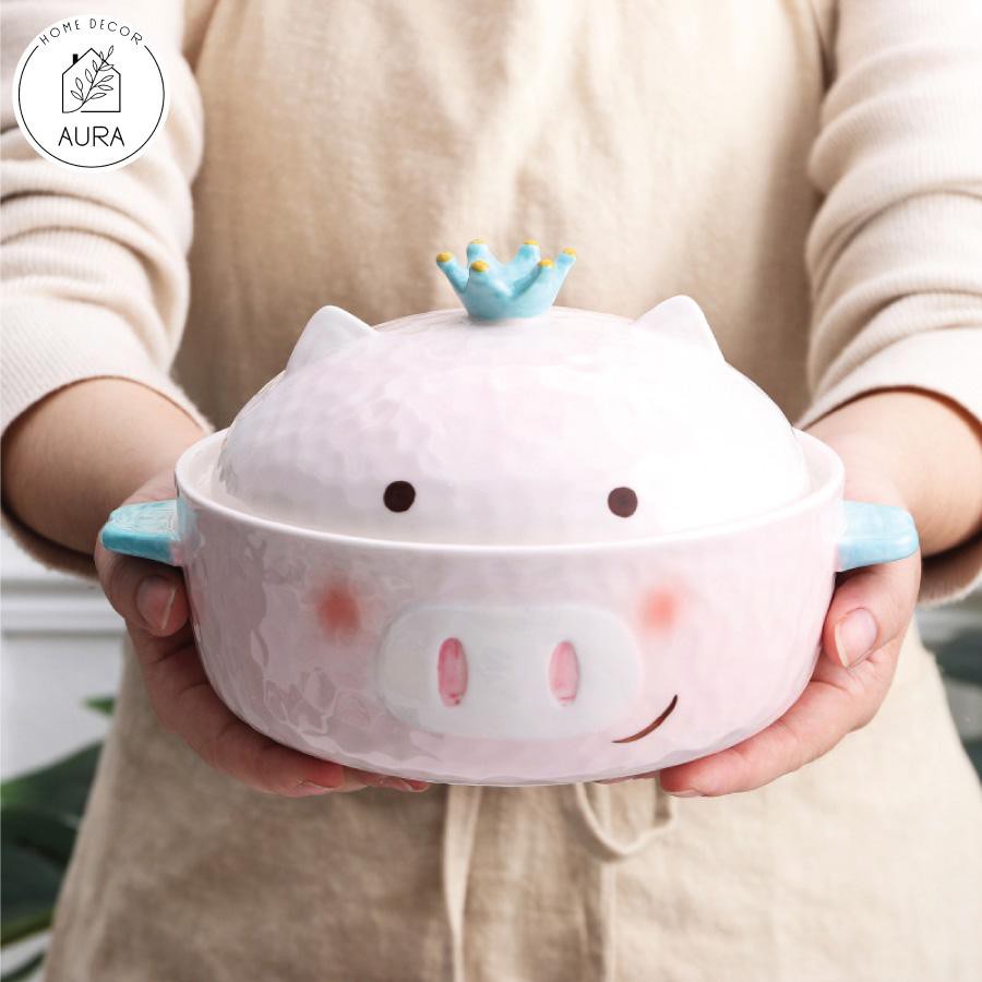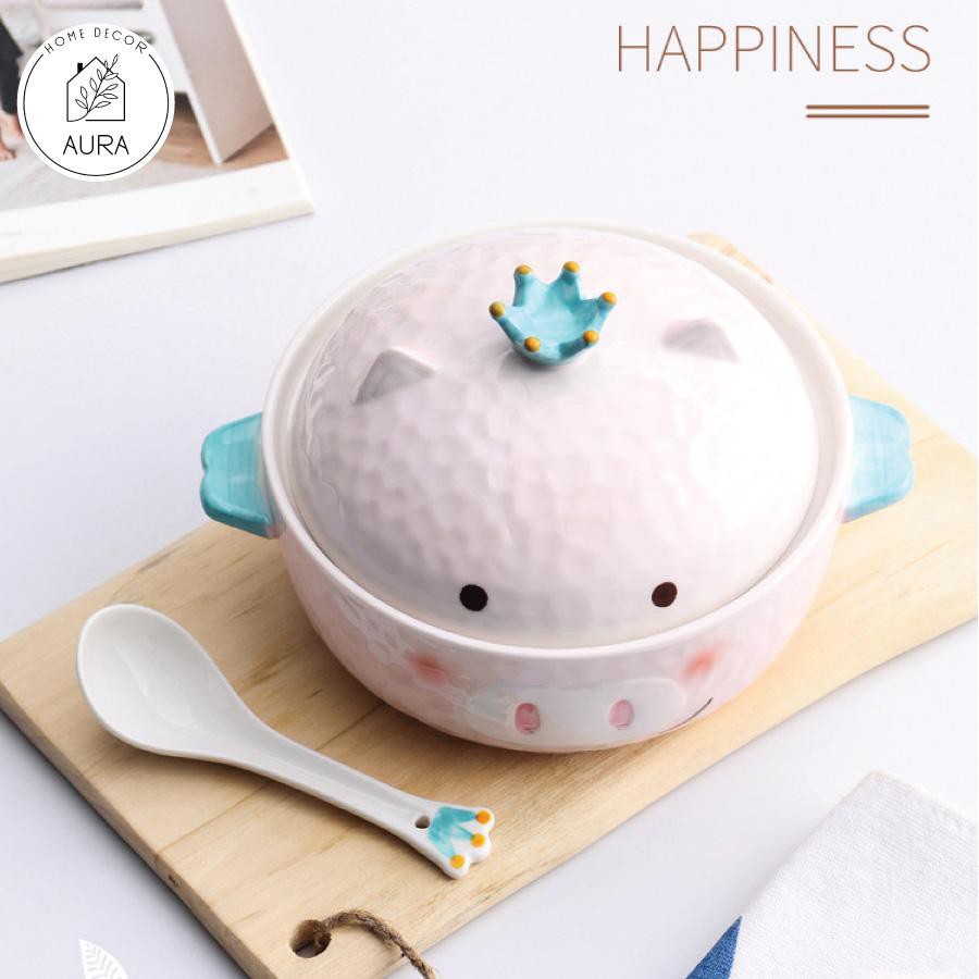 Bát Ăn Dặm, Bát Nồi Gốm Sứ Có Nắp Hình Heo Vua Đáng Yêu Và Tiện Dụng - Hàng Sẵn Kho- Giao Luôn