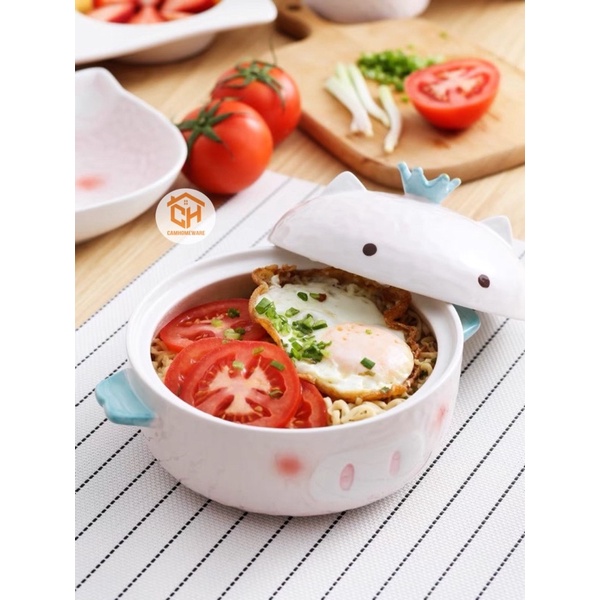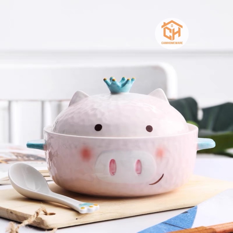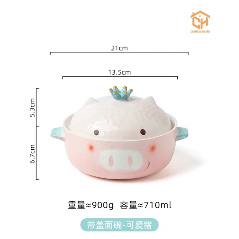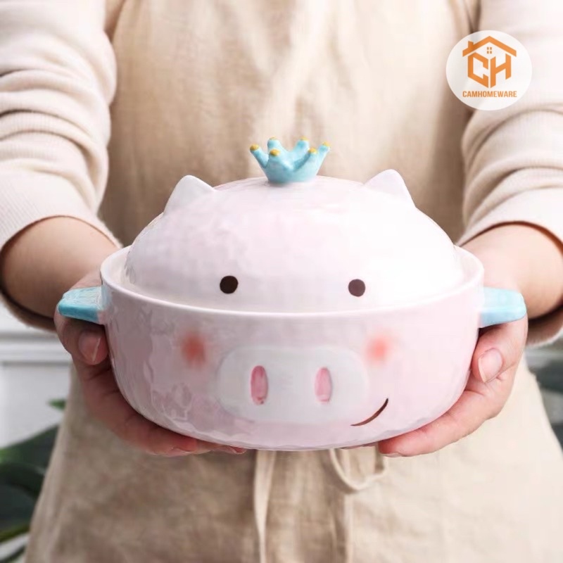 Bát Ăn Dặm ,Bát Nồi Gốm Sứ Hình Heo Siêu Đẹp Và Tiện Dụng Cam Homeware