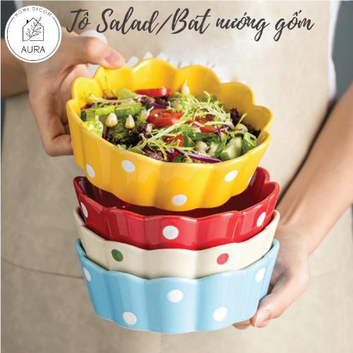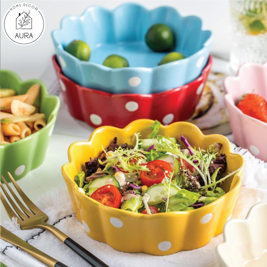 Bát ăn dặm,Bát tô gốm sứ chấm bi 400ml tuyệt đẹp.Đủ màu sắc, cực chill lại tiện dùng nữa.