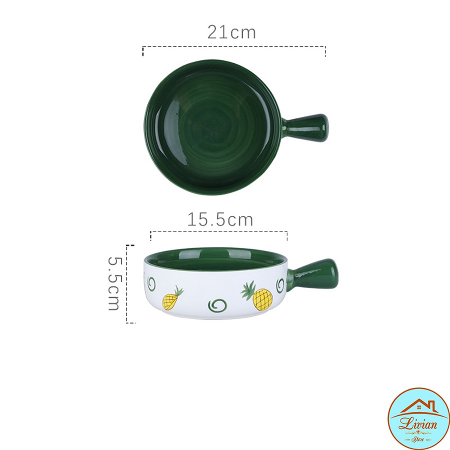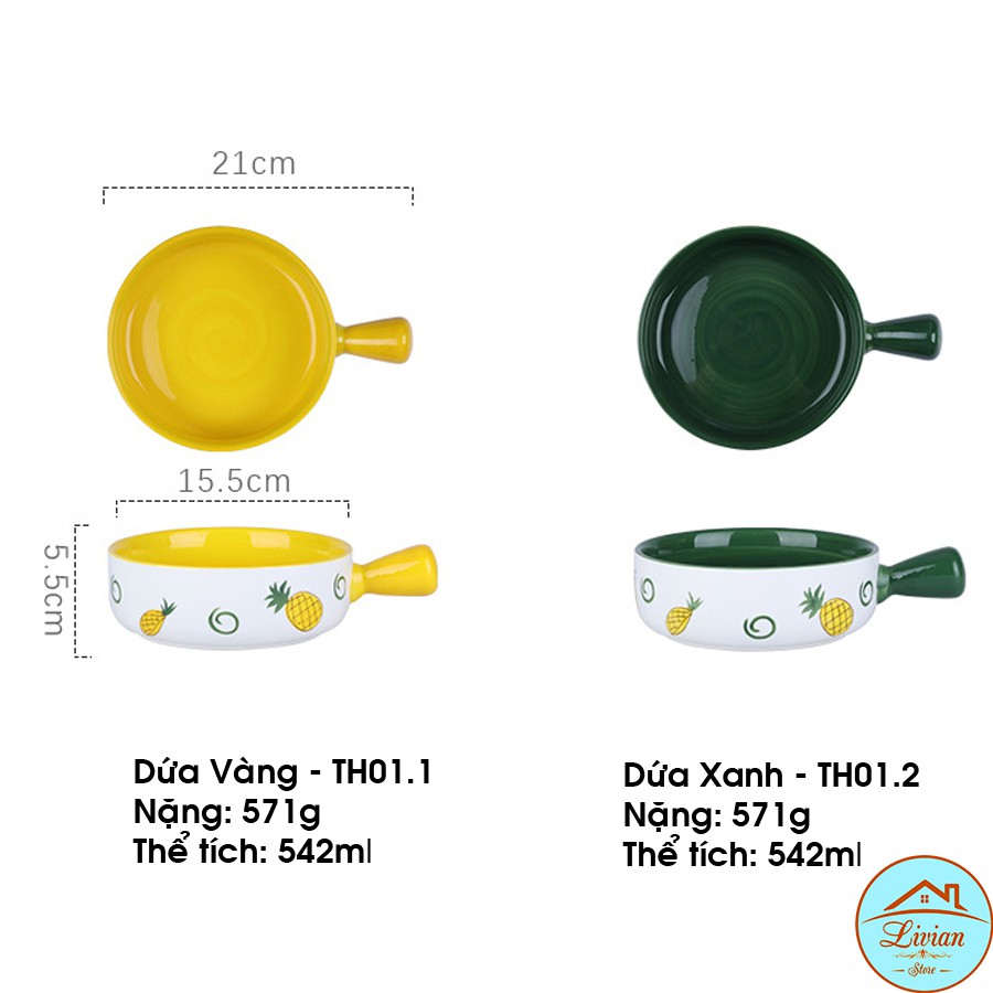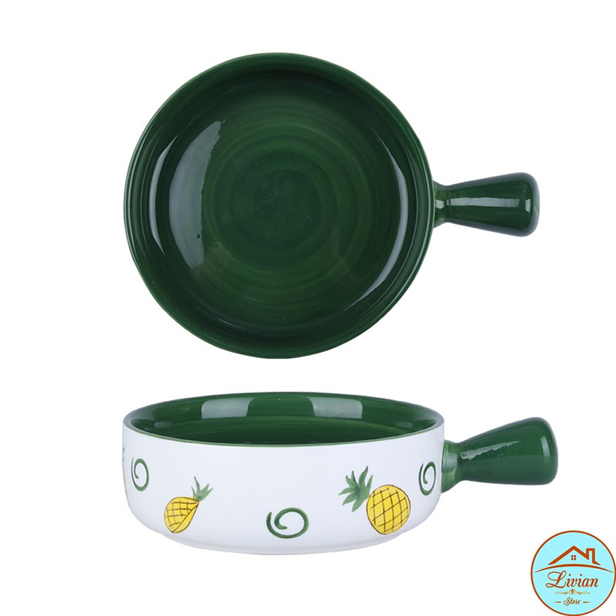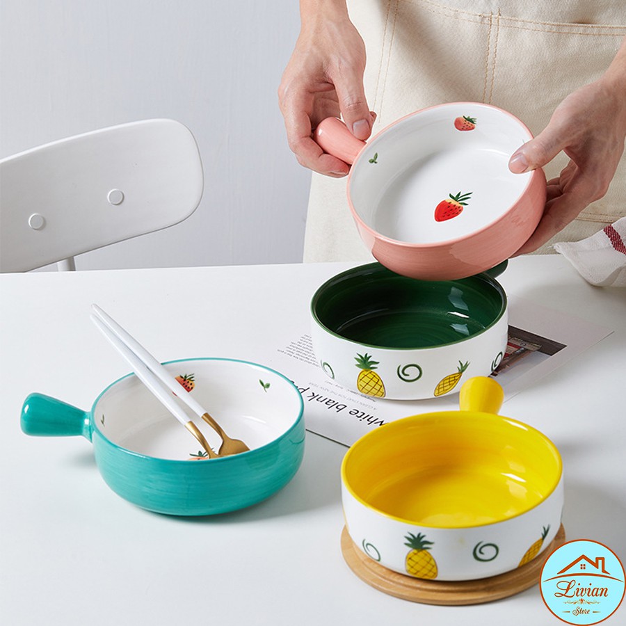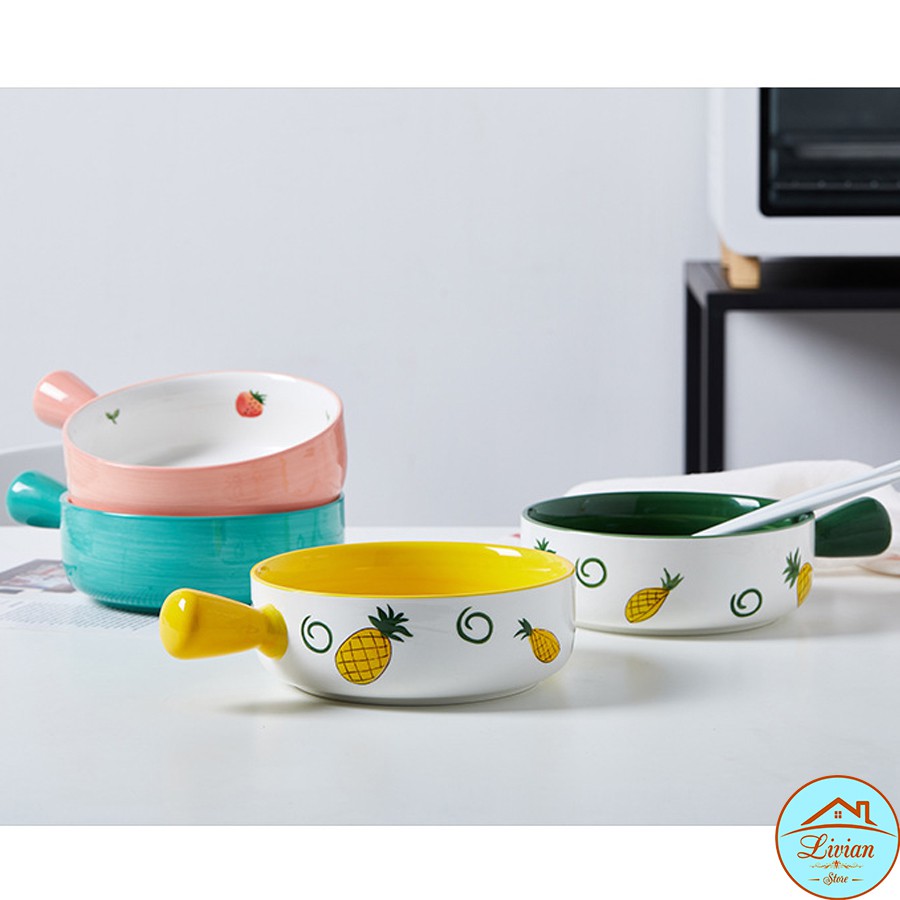 Nhà cửa & Đời sống > Bộ đồ bàn ăn > Dĩa || Bát ăn dặm, thố nướng tròn có tay cầm cao cấp 15.5cm họa tiết quả dứa, dâu tâyCòn hàng