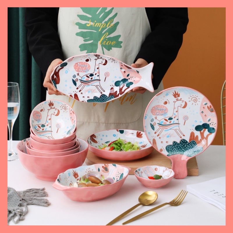 Nhà cửa & Đời sống > Bộ đồ bàn ăn > Tô || Bộ bát ăn Hươu Hồng gốm sứ cao cấp trọn bộ đủ món - Hàng có sẵn + Ảnh thật shop tự chụp ❤️Còn hàng