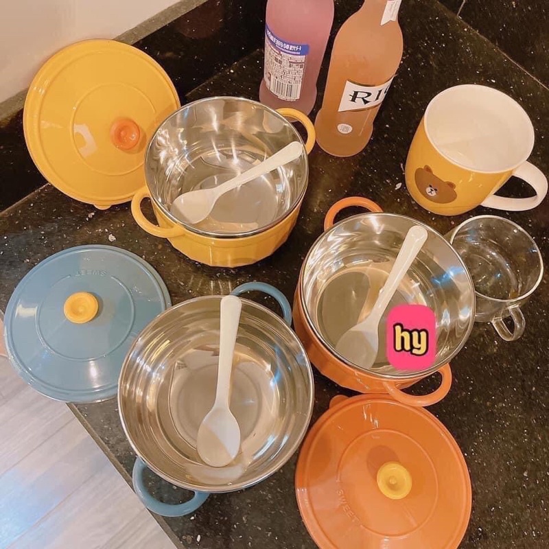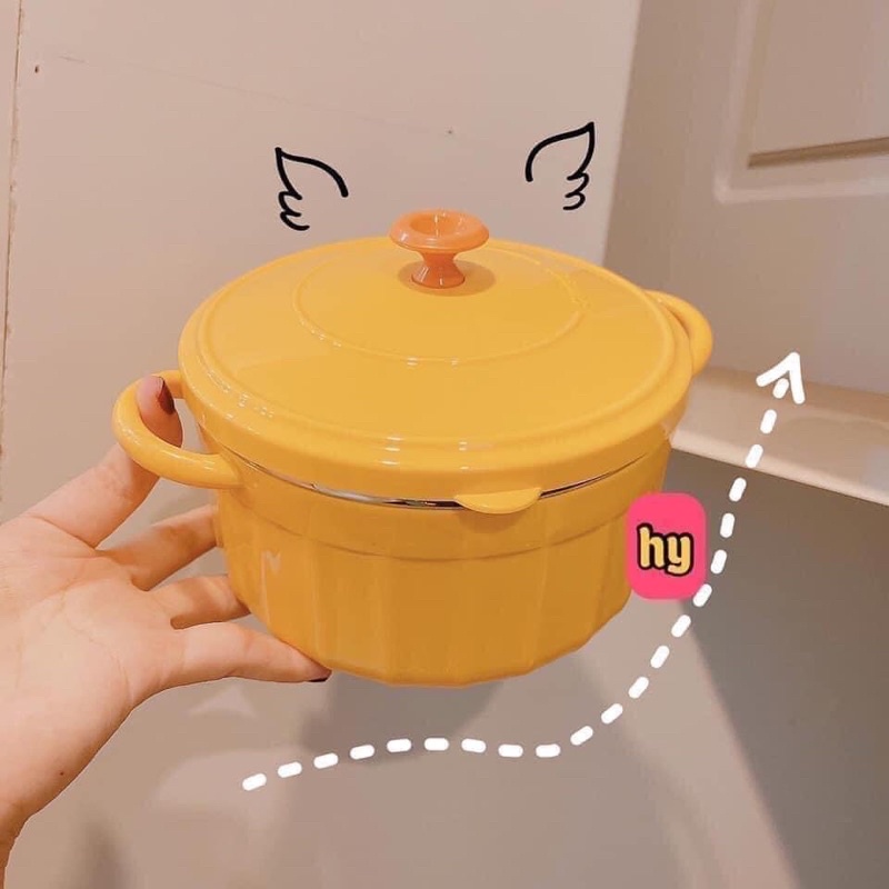 Bát Nấu Mì Mô Phỏng Nồi Đất SWEET 850ml Bằng Thép Không Gỉ Có Nắp Đậy