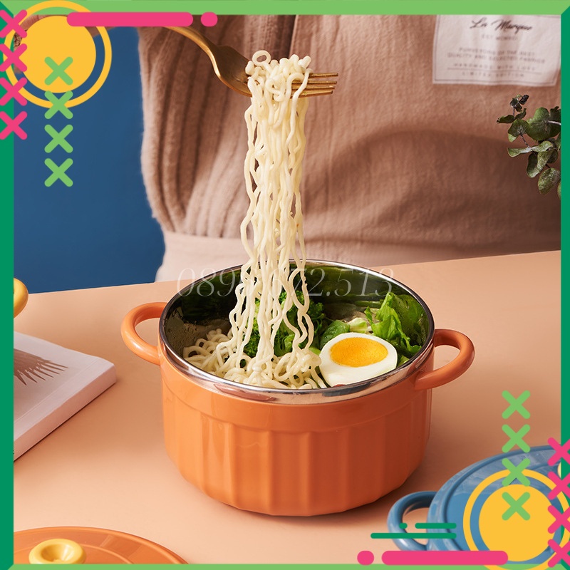 Bát Ăn Mì Cute Có Nắp Có Tay Cầm Inox Kiểu Hàn Quốc Kèm Thìa, Bát Úp Mì Tôm Tiện Lợi Cực Xinh