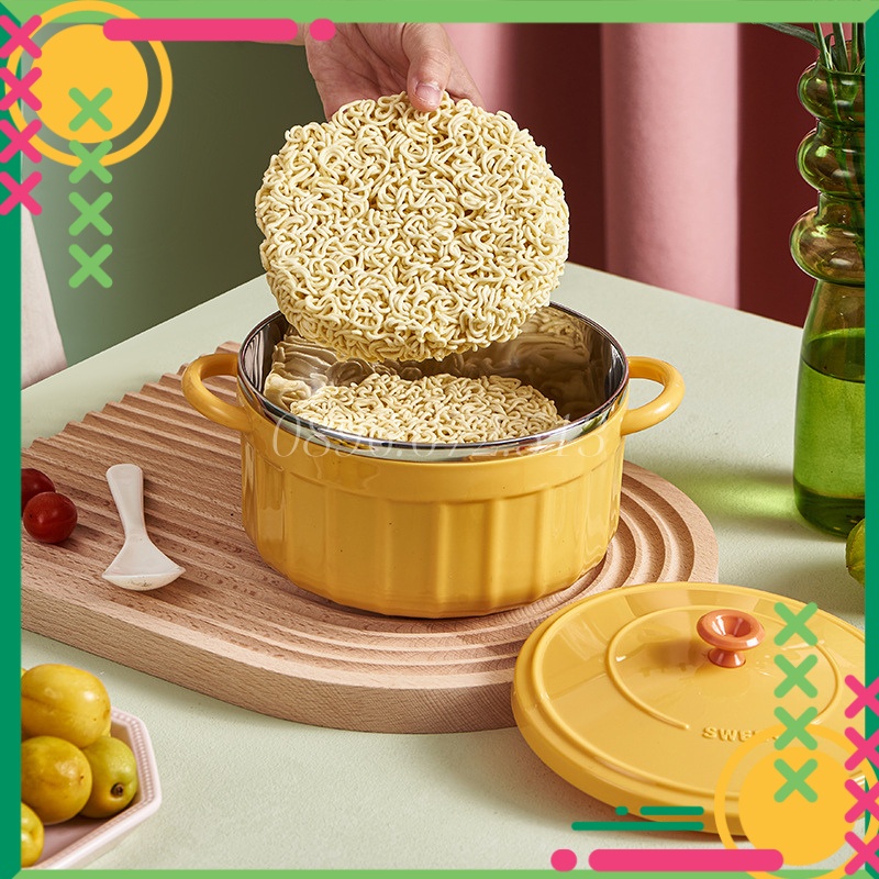 Nhà cửa & Đời sống > Bộ đồ bàn ăn > Tô || Bát Ăn Mì Cute Có Nắp Có Tay Cầm Inox Kiểu Hàn Quốc Kèm Thìa, Bát Úp Mì Tôm Tiện Lợi Cực XinhCòn hàng