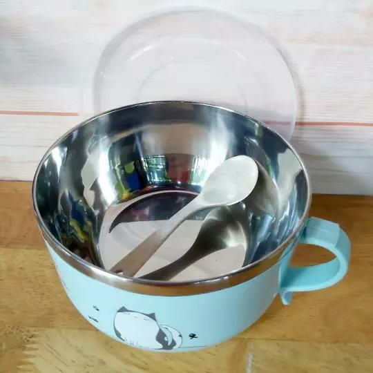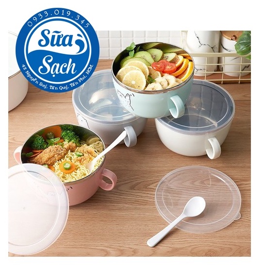 ảo quản thức ăn tốt tránh côn trùng, và được tặng thêm 1 cái muỗng cùng màu với bát, tiện dụng hơn trong việc mang theo đi làm…Phần lòng bát được tráng lớp inox 304 chống hoen gỉ, không bám dầu mỡ khó rửa. Kế lớp inox đó thì đến 1 lớp không khí rỗng để hạn chế nhiệt tỏa ra vỏ ngoài bát giúp cách nhiệt tối đa, dù thức ăn có nóng đến cỡ nào thì vỏ ngoài bát cũng không bị ảnh hưởng.