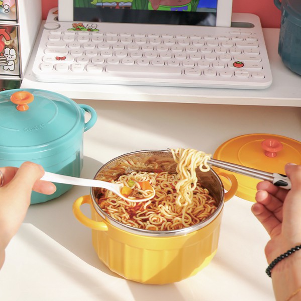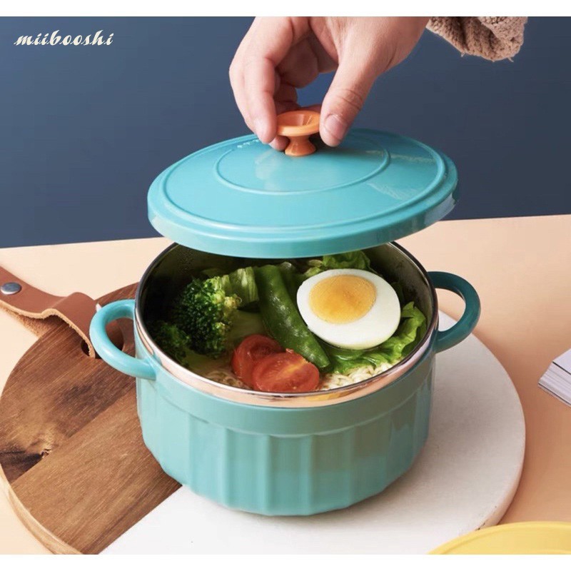 Nhà cửa & Đời sống > Bộ đồ bàn ăn > Tô || Bát ăn mì tôm có tay cầm lõi inox có nắp chống nóngCòn hàng