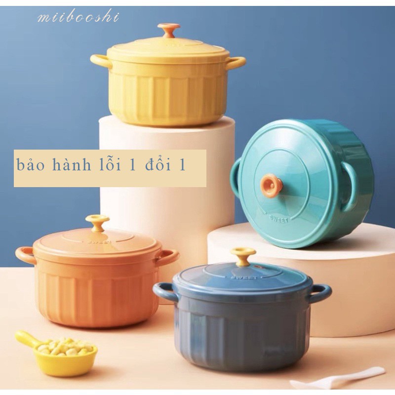 - Thiết kế tô ăn mì dạng nồi cực dễ thương, bát có quai cầm tiện lợi và nắp chắc chắn