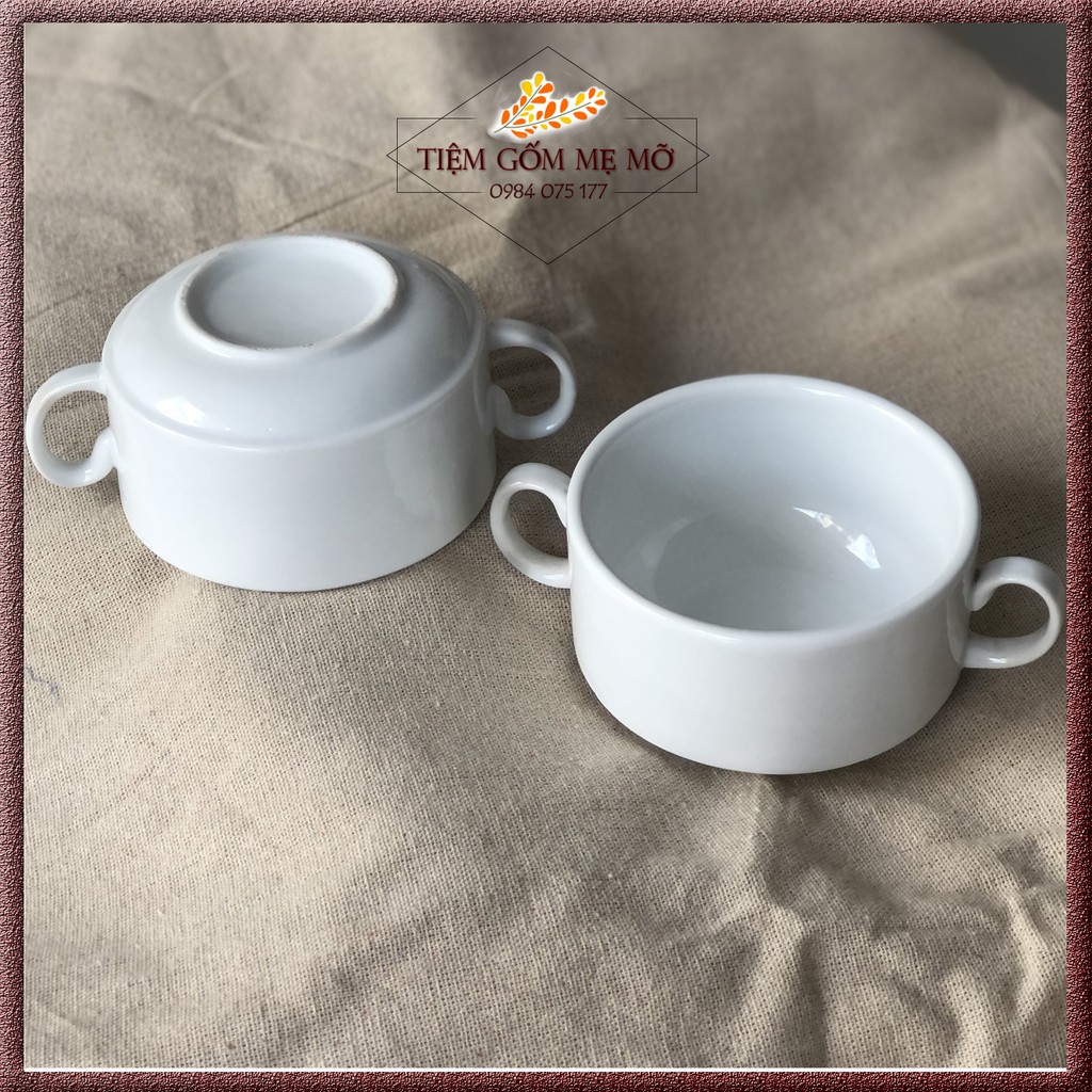 Nhà cửa & Đời sống > Bộ đồ bàn ăn > Tô || Bát ăn soup, bát chè, bát ăn dặm, bát decor món ăn có 2 quai cầm bằng gốm sứ Bát TràngCòn hàng
